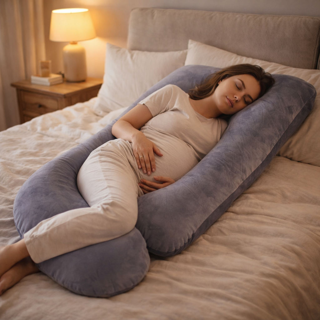Glissez-vous dans une position naturellement confortable, pendant que le coussin enveloppe votre ventre et aide votre dos à se relâcher en douceur.